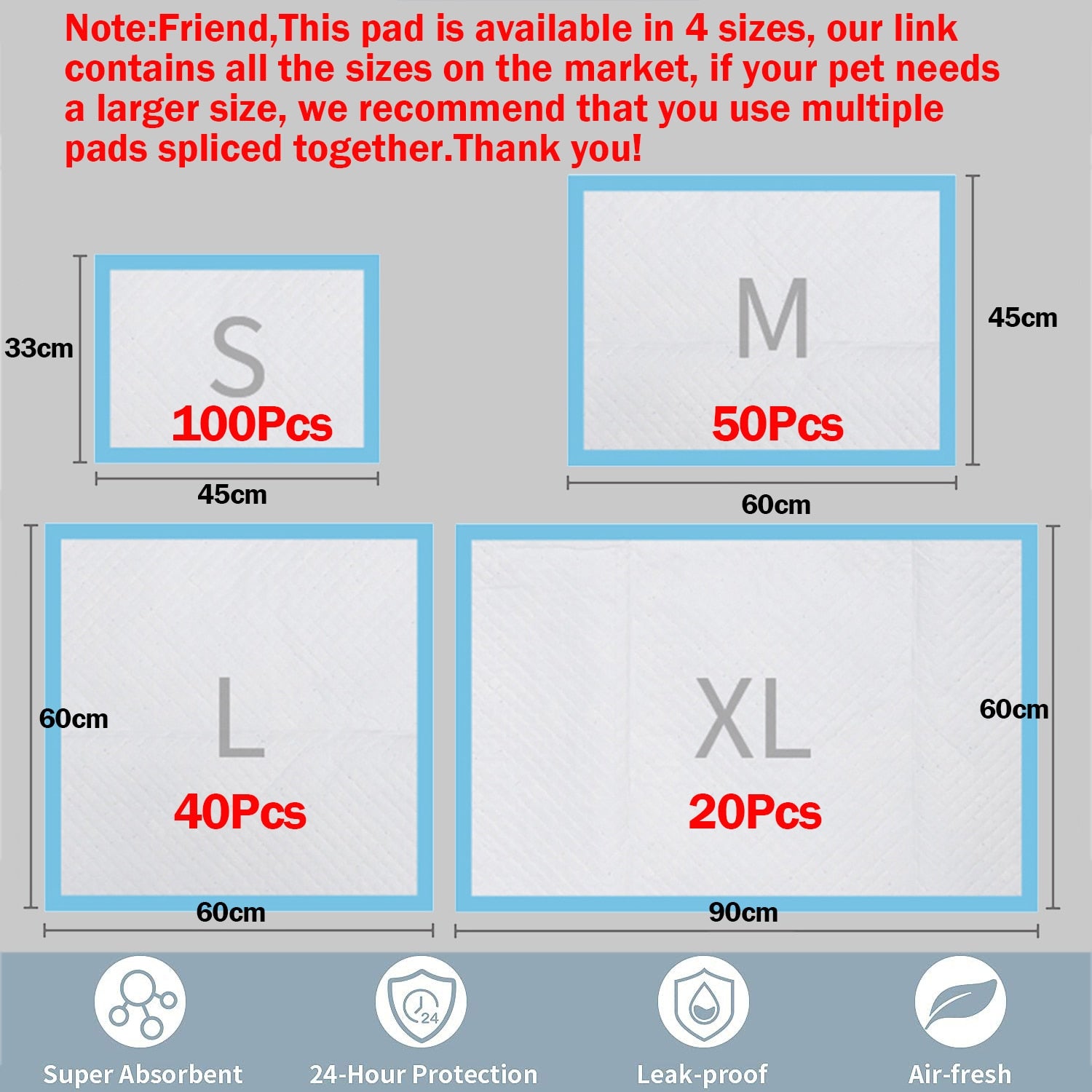 Say goodbye to messy accidents with these Super Absorbent Dog Training Pads β the clean, stress-free solution for potty training, aging pets, or indoor relief. These disposable pee pads are built with a multi-layered design that locks in moisture, neutralizes odors, and protects your floors.